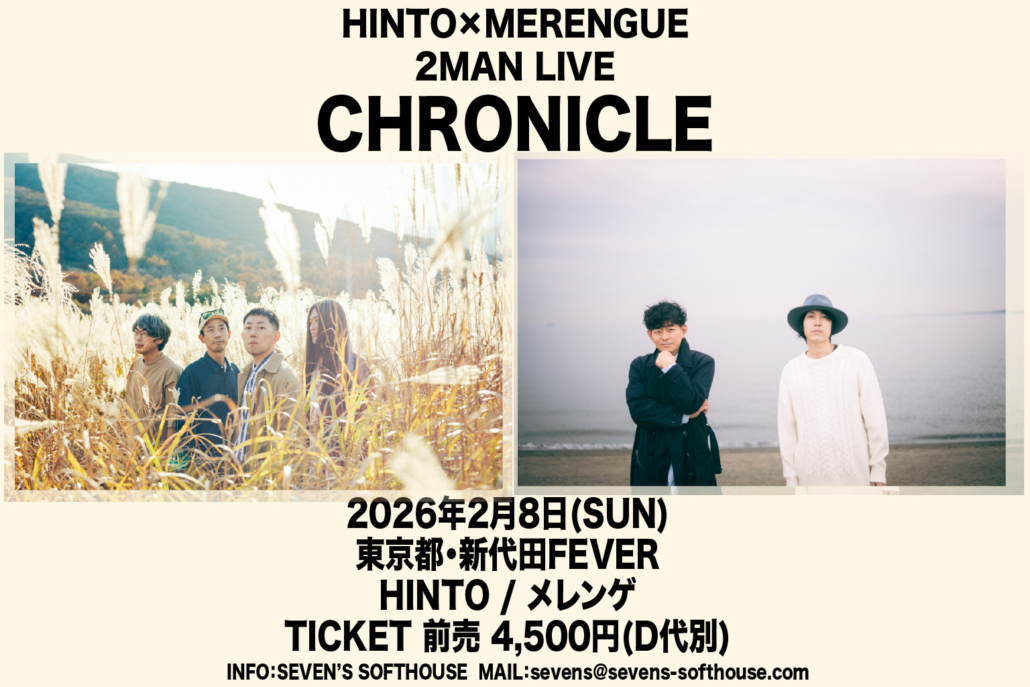 hintobxbj2025-12-19 21:00:002025-12-19 00:12:432026/2/8(SUN)メレンゲとの2マンLIVE開催決定!